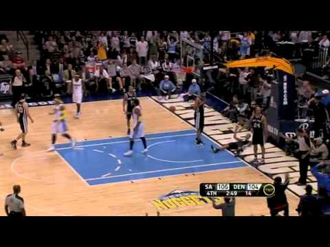 Este es el vídeo resumen de la exhibición que dio Manu Ginobili en la capital de Colorado. Metiendo una canasta ganadora y más tarde forzando una falta en ataque clarísima a Carmelo Anthony impidiendo que este ganase el partido para los Nuggets.